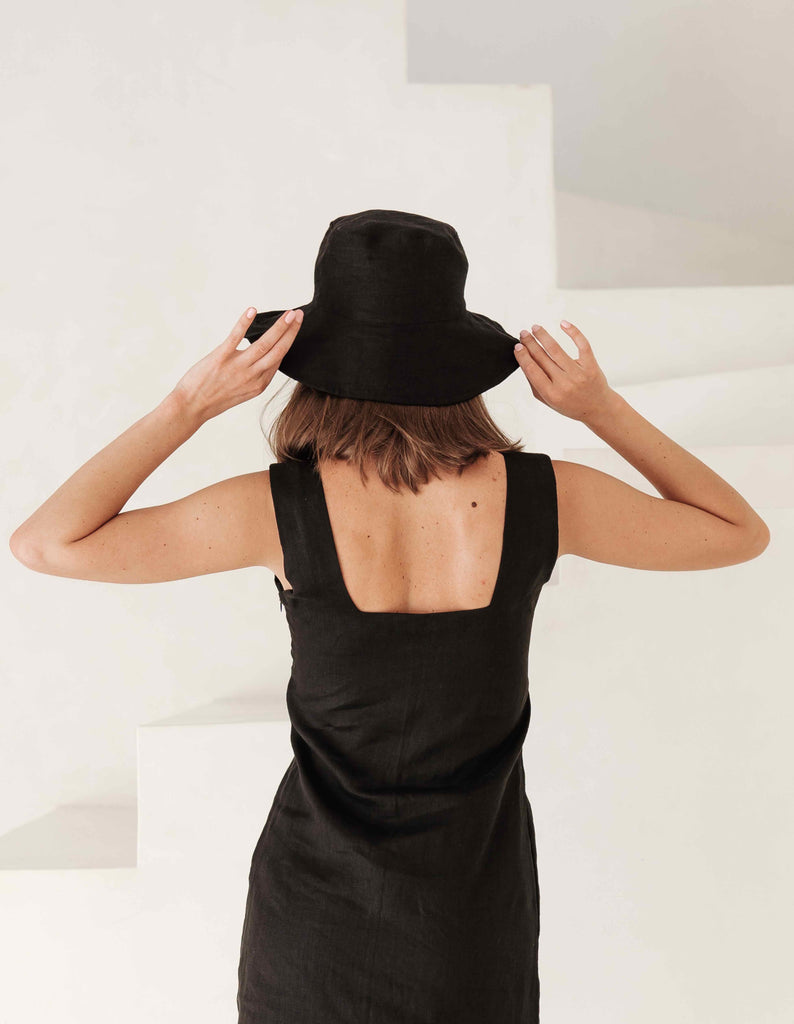 The Meno Bucket Hat, handmade in our signature premium linen, is a must-have for sunny summer days. Guaranteed to liven up any look from the beach to brunch we expect you're going to live in it.